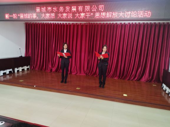 晉城市水務(wù)發(fā)展有限公司舉辦新一輪“晉城的事,大家想大家說(shuō)大家干”思想解放大討論活動(dòng),共分朗誦、演講以及知識(shí)競(jìng)賽三項(xiàng)內(nèi)容,朗誦、演講環(huán)節(jié),大家慷慨激昂;知識(shí)競(jìng)賽環(huán)節(jié),大家各隊(duì)內(nèi)部團(tuán)結(jié)互助、拼時(shí)間、拼智慧;難分伯仲,觀眾的掌聲、加油聲此起彼伏,充分體現(xiàn)了一種不畏挑戰(zhàn)、敢于競(jìng)爭(zhēng)的先鋒精神。