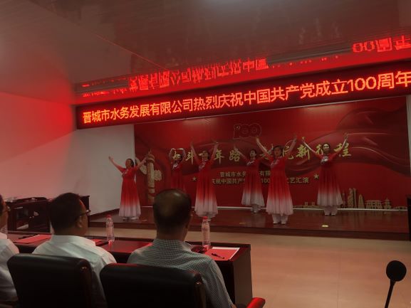 為慶祝中國共產(chǎn)黨成立100周年,緬懷革命先烈,謳歌黨的豐功偉績,6月30日下午晉城市水務發(fā)展有限公司在一級泵站開展慶祝建黨100周年文藝匯演活動。演出在詩朗誦《夢想藍圖 百年時光 永遠跟黨走》中拉開帷幕,舞蹈、三句半、小品和歌曲等輪番上陣。文藝表演期間穿插進行了你比我猜小游戲和黨史知識競賽環(huán)節(jié),本次黨史知識競賽內(nèi)容豐富,題目緊緊圍繞中國共產(chǎn)主義的歷史、發(fā)展,黨章、十八大報告等方面展開,參賽選手積極應答,氣氛緊張而熱烈,整個問答環(huán)節(jié)不時博得大家陣陣掌聲。演出在全體職工的合唱《我們走在大路上》中結(jié)束,最后公司董事長、黨支部書記潘軍同志進行了講話。此次文藝匯演既豐富了職工的精神文化生活,又提升了大家愛國、愛黨的熱情;黨員群眾們歡聚一堂,共同為偉大的中國共產(chǎn)黨獻上最誠摯的祝福。