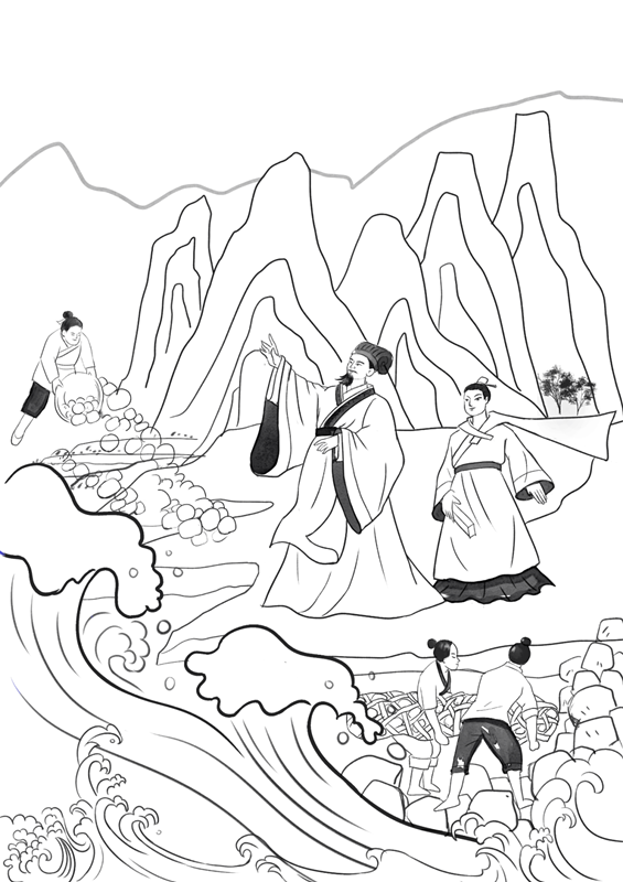 “李大人,我們這里年年雨季河水泛濫,不僅糧食顆粒無收,眼看連村莊都要被淹沒了。這讓我們?cè)趺椿畎?!”聽到百姓們苦澀的心聲,李冰深深?dòng)容,情不自禁地流下眼淚。于是,他下定決心:“治蜀先治水”。